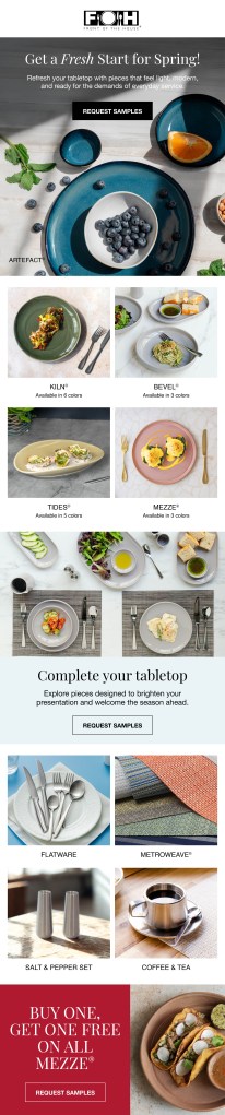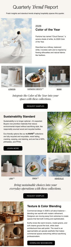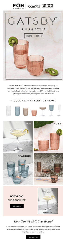 I’ve designed countless marketing emails, ranging from new collection introductions to trend newsletters. Due to an increase in our marketing campaigns, I’ve prioritized creating email templates in order to simplify and expedite the design and approval process.